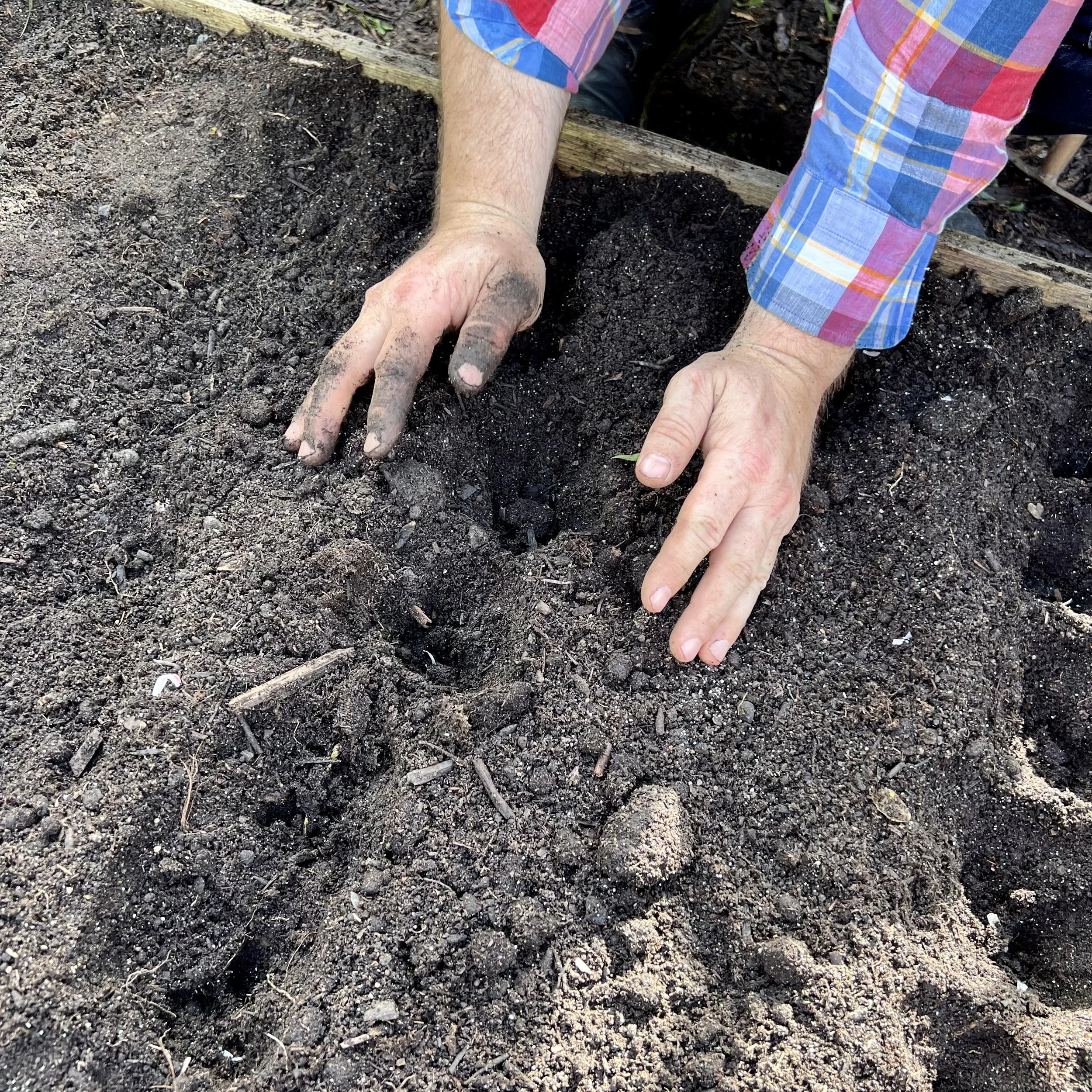 💡 Tip: Vezmu stroužek mezi prsty a zatlačím asi 10 cm hluboko.