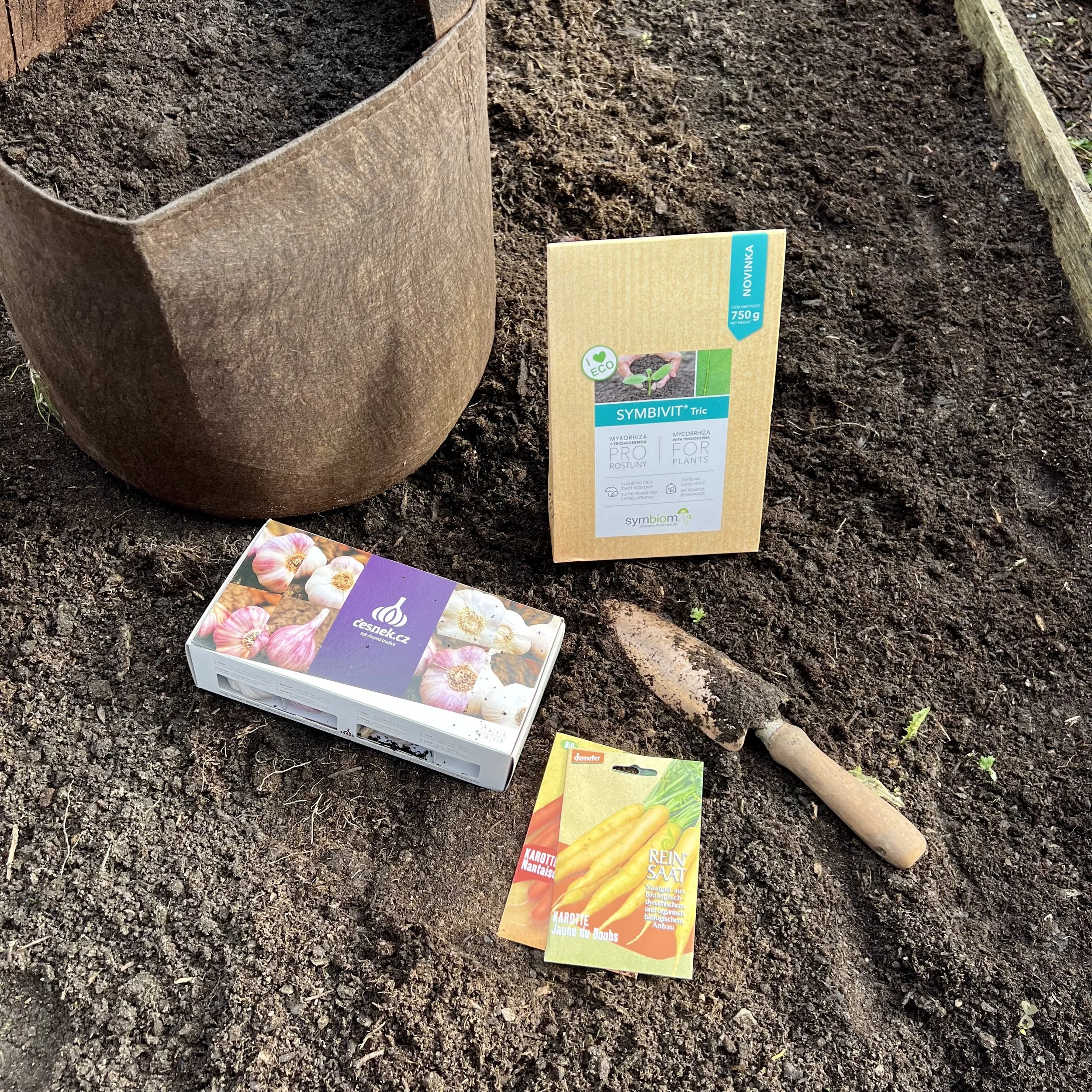 Doporučuji použít pro podporu růstu a zdraví česneku mykorhizu. Z nabídky Symbiom je pro česnek nejvhodnější Symbivit Tric. V něm můžete rozebrané stroužky vyválet, nebo mykorhizu nasypat přímo na záhon a zapracovat do půdy.